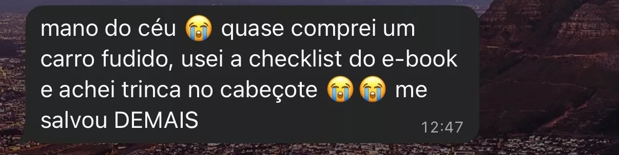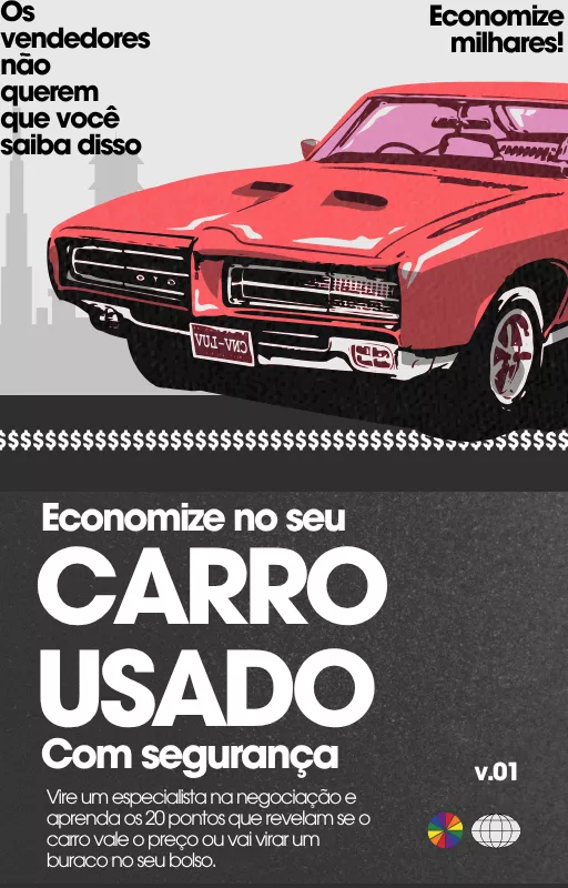 Hoje, decidi reunir tudo isso no meu e-book, para que você possa aplicar meu conhecimento na prática, economizar milhares de reais e fazer compras de forma segura e consciente. Sem achismos, apenas o que realmente funciona na hora de escolher um carro.
